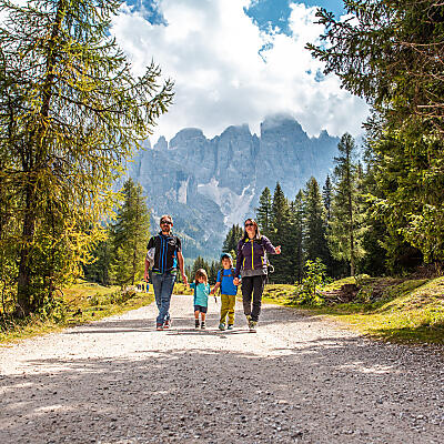 Die Dolomiten bieten eine einzigartige Gebirgslandschaft. Das entspannte Wandern inmitten dieser majestätischen Landschaft wird Sie in ihren Bann ziehen, ebenso wie die einzigartige Natur unter den Pale di San Martino. Sie können Trekkingtouren mit verschiedenen Schwierigkeitsgraden für alle Altersgruppen wählen.