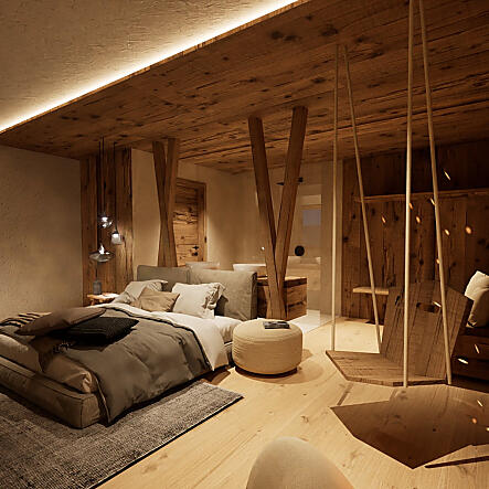 Hell, komfortabel, elegant, gemütlich und entspannend: Das sind die neuen Chalets des Hotels Letizia, Ferienwohnungen, die Sie ab dem Frühjahr 2026 im Herzen von San Martino di Castrozza, der Perle der Dolomiten, willkommen heißen.