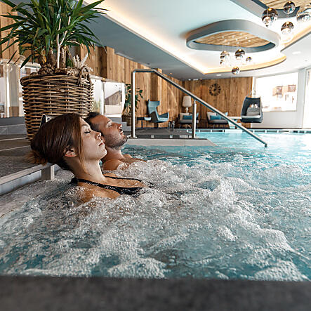 Im Hotel Letizia, Ihrem 3-Sterne-Wellnesshotel im Trentino, haben Sie freien Zugang zu unserem Pool mit Sitzbank, Hydromassageliegen und Nackenschwall.
