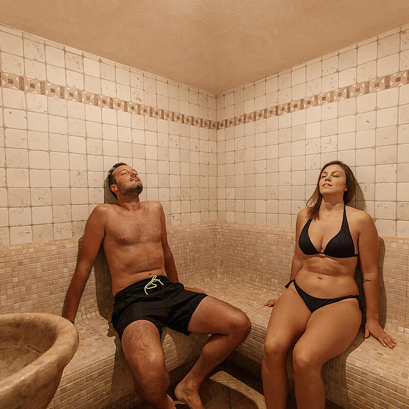 Unser römisches Dampfbad (65°/80° C) mit einer Luftfeuchtigkeit von 55-65% bietet einen angenehmen Moment echten Wohlbefindens. Das durch die hohe Temperatur hervorgerufene intensive Schwitzen sorgt für eine natürliche Entgiftung des Körpers und ein Ausscheiden der Giftstoffe.