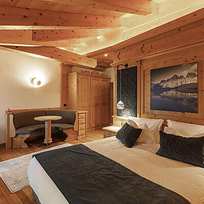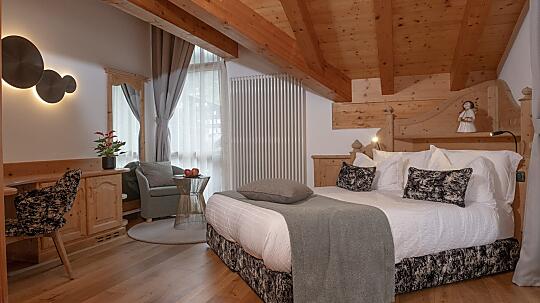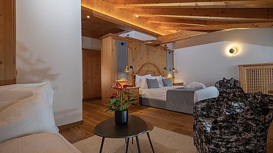 Die Junior-Suiten bieten nicht nur mehr Platz, sondern auch mehr Komfort. Diese Zimmer sind in der Tat im Bergstil eingerichtet, haben einen Balkon und sind für 2/3...