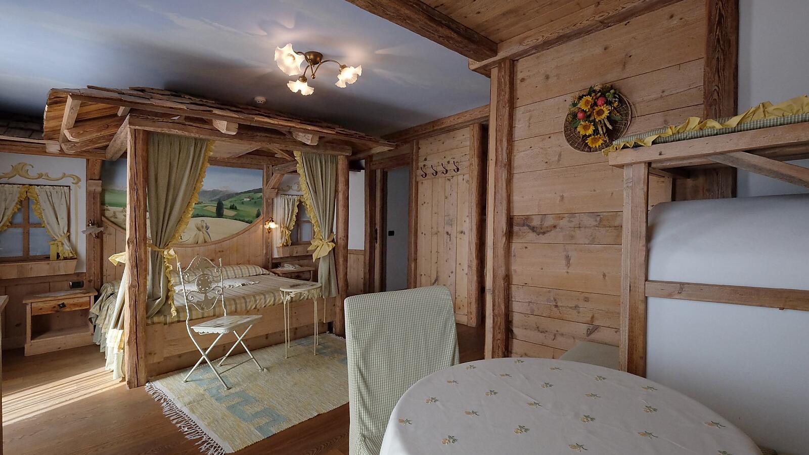 Die Junior-Suiten bieten nicht nur mehr Platz, sondern auch mehr Komfort. Diese Zimmer sind in der Tat im Bergstil eingerichtet, haben einen Balkon und sind für 2/3 Personen geeignet.