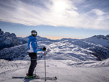 Con piste innevate sicure e baciate dal sole, le Dolomiti offrono qui il lato più bello dell'inverno.